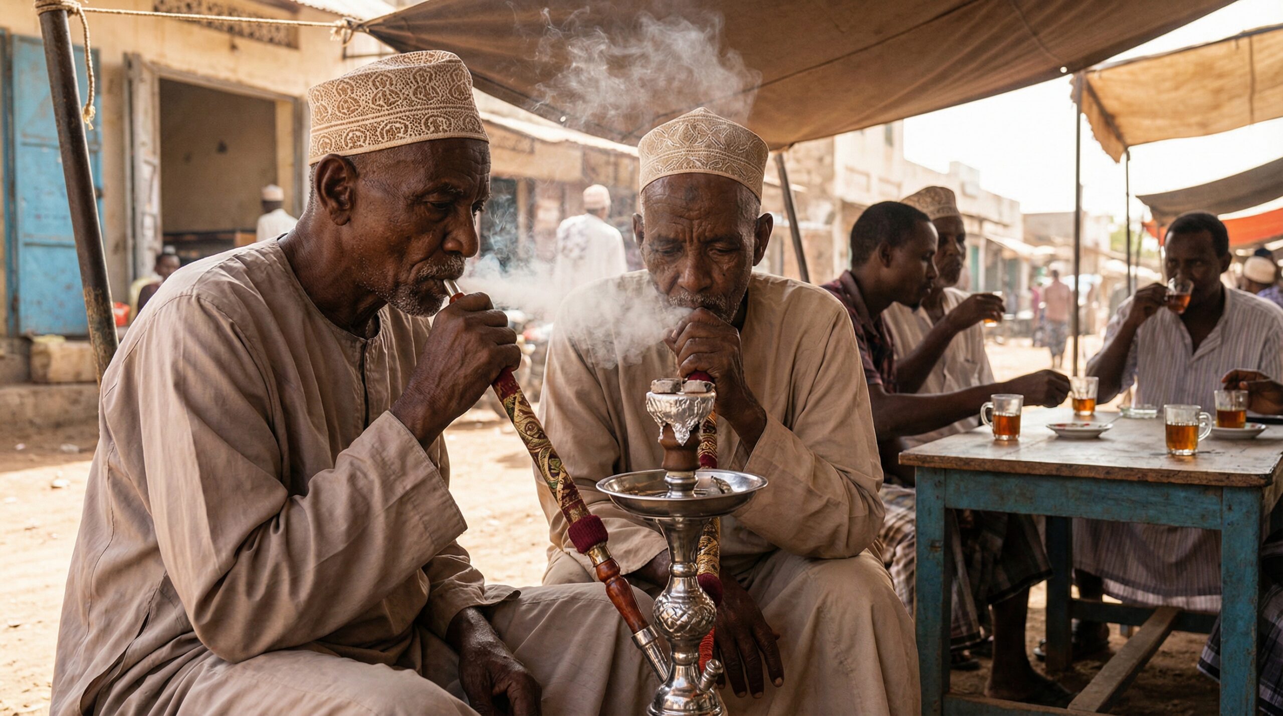 一方で、この光景はジブチの「チャット(カート)」文化とも深く結びついています。チャットとは東アフリカやアラビア半島で親しまれている覚醒作用のある植物の葉で、多くの男性が午後の時間を使ってゆっくりとこれを噛みます。そしてチャットの習慣には、甘い紅茶とタバコが欠かせない必須のお供として存在しているのです。つまり、喫煙は単なる個人の嗜好というよりも、社交や文化的習慣と密接に結びついている側面が強いと言えるでしょう。