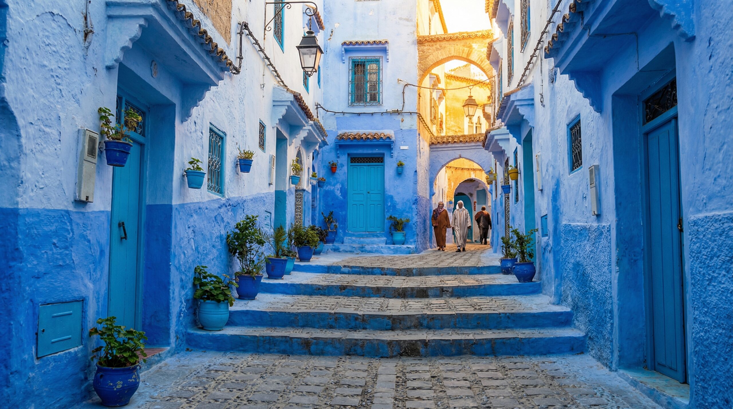 モロッコと言えば、多くの人が真っ先に思い浮かべるのが、リフ山脈の麓に佇む「青い宝石」と称されるシャウエンではないでしょうか。扉や壁、階段まで多彩な青のトーンで彩られた旧市街は、まるでおとぎ話の世界に入り込んだかのような幻想的な光景です。この美しい青には、いくつかの由来が伝えられています。