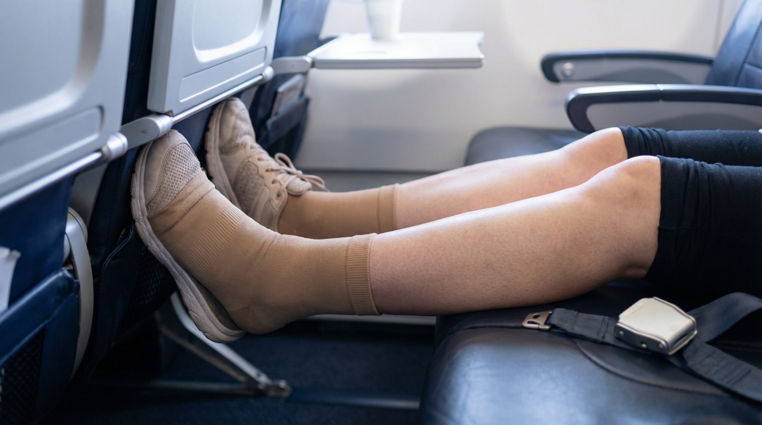 足を組まない: 無意識に足を組みがちですが、それにより太ももの付け根にある大きな血管やリンパ節が圧迫され、血流が著しく悪化します。フライト中はできるだけ両足を床につけて座ることを意識しましょう。