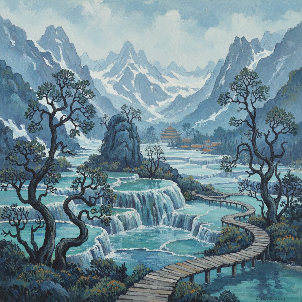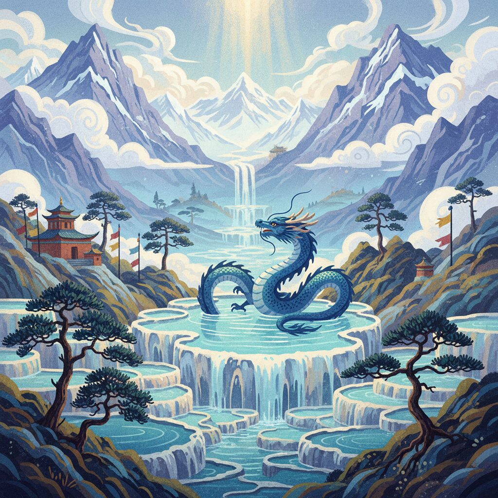 黄竜は、中国で「人間瑶池(にんげんようち)」、つまり「この世の仙境」と呼ばれています。瑶池とは、中国神話に登場する西王母という女神が住む宮殿の伝説的な池のことを指します。黄竜の美しさは、その伝説の池がまさに地上に現れたかのようだと称賛されているのです。