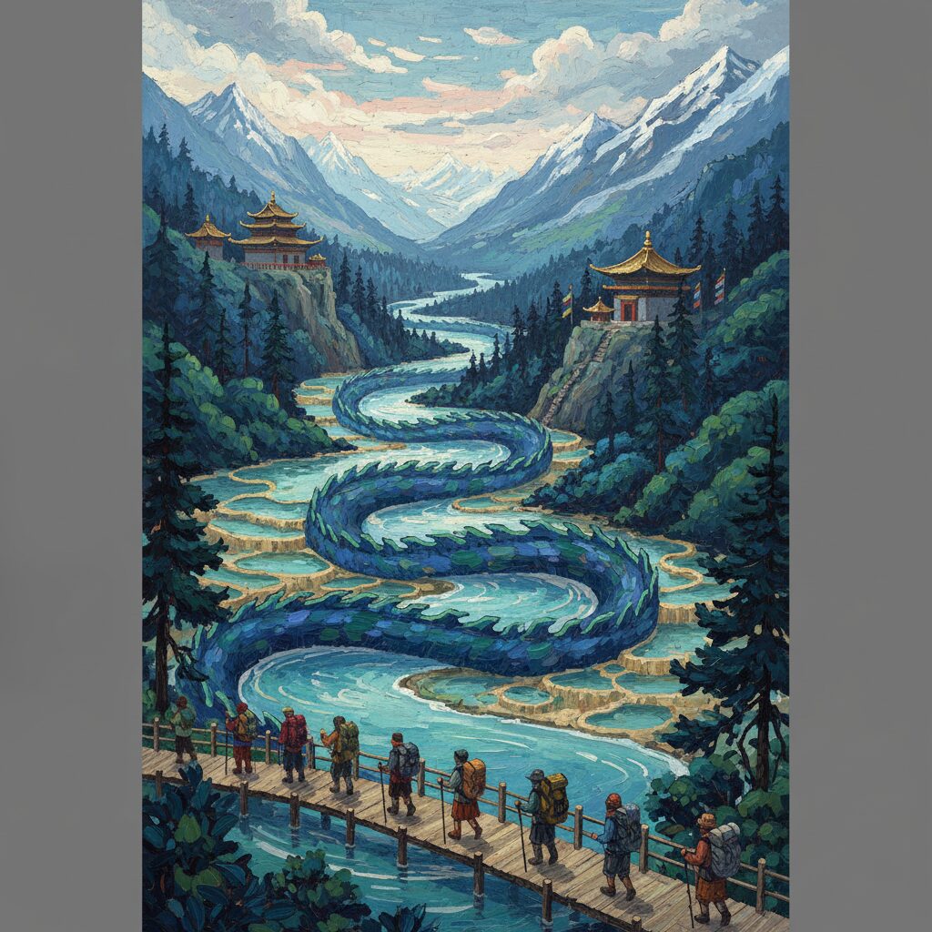 ここは、かつて巨大な龍が山を駆け上った跡だという伝説が息づく場所。チベット文化圏の聖地として、またユネスコ世界自然遺産として、その神秘的な美しさは世界中の旅人を魅了し続けています。