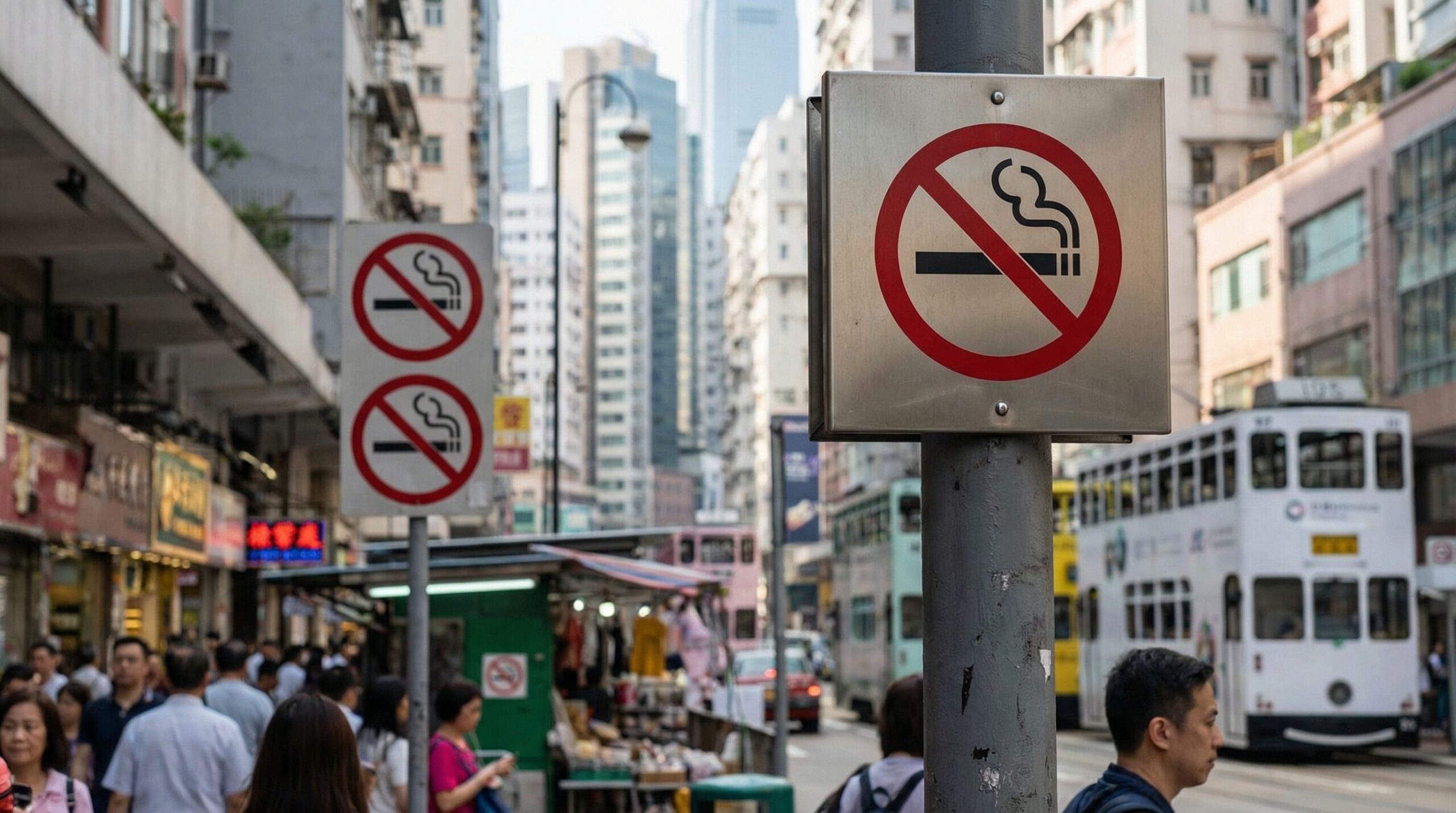 - 公共交通機関(MTR、バス、トラム、フェリー)とその乗り場: 電車やバスの内部だけでなく、ホームやバス停もほとんどが禁煙エリアに指定されています。