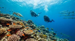 プールの広さは非常にゆったりとしており、水深も場所により様々です。子どもたちが遊べる浅瀬から大人が安心して飛び込める深いエリアまで揃っているため、幅広い世代が安全に楽しめます。水の透明度が非常に高いため、ゴーグルを持参すれば、水中で泳ぐ魚たちの姿を観察する楽しみも味わえます。