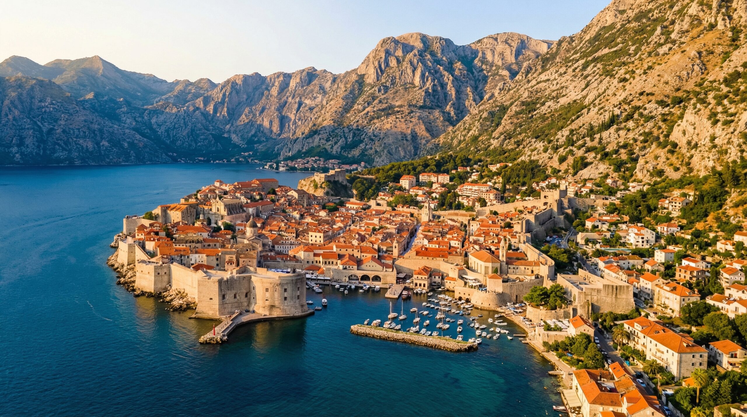 紺碧の海が鏡のように空を映し、険しい山肌がまるで巨大な屏風のように迫ってくる。その山と海の間に、ぎゅっと抱かれるようにして存在する迷宮都市、モンテネグロのコトル旧市街。オレンジ色の屋根瓦がひしめき合い、中世の物語からそのまま抜け出してきたかのような石畳の路地が、旅人を時間旅行へと誘います。
