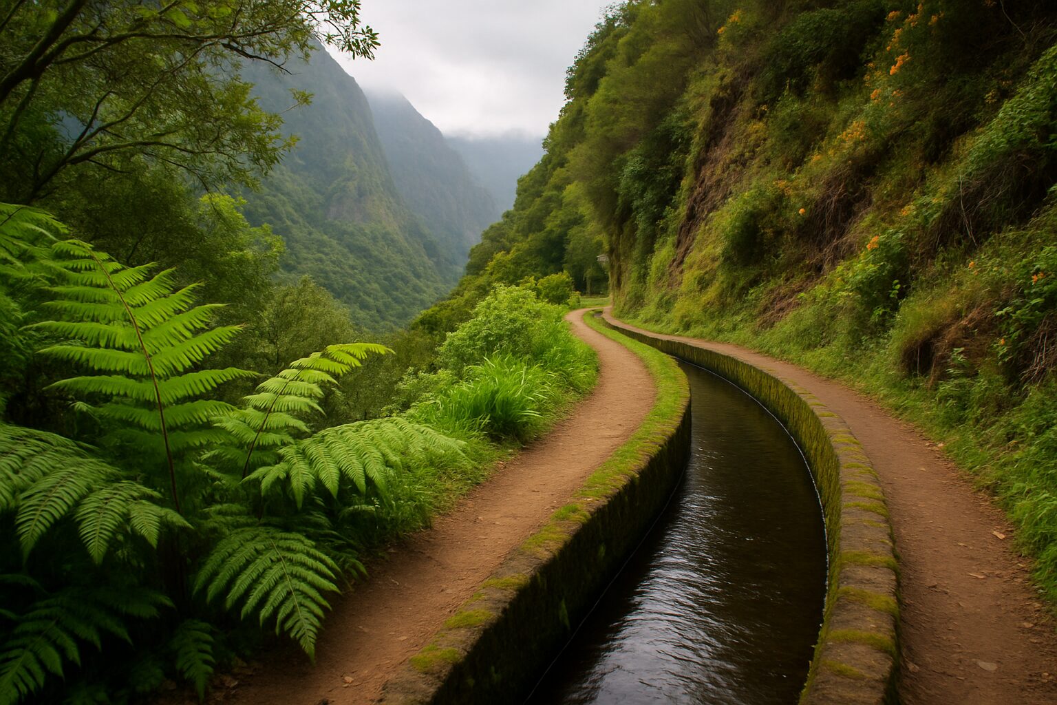 このレヴァダは単なる水路ではありません。水路沿いには、維持管理のための作業路が必ず設けられてきました。この道が現在では世界中のハイカーを惹きつける素晴らしいトレッキングルートとなっています。レヴァダウォークの最大の魅力は、そのゆるやかな勾配です。水は高地から低地へとわずかな傾斜で流れるため、道も同様に緩やかなアップダウンで構成されており、体力に自信がなくとも気軽に美しい自然を楽しむことが可能です。せせらぎの音をBGMに、シダや苔に覆われた石の壁沿いを歩く時間は、心に安らぎをもたらす魔法のひとときです。