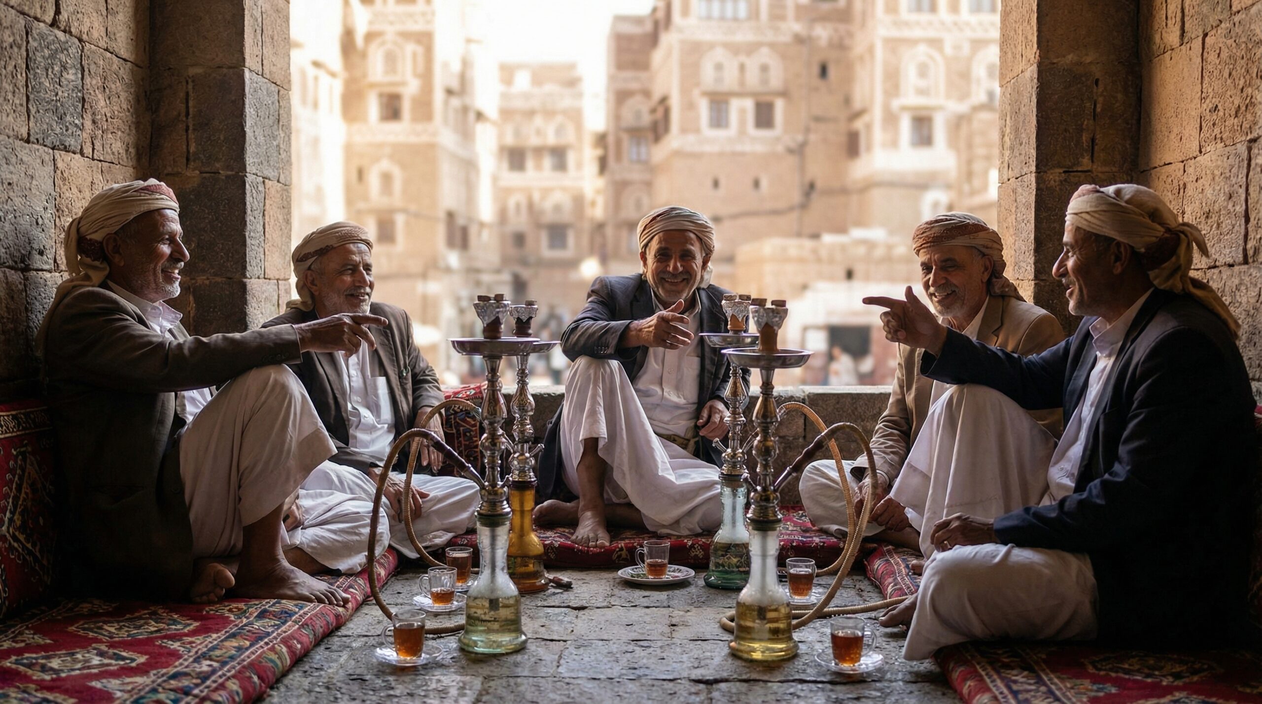 このような独特の景観と文化は、イエメンがアラビア半島の他の国々とは異なる、独自の歴史を歩んできた証です。古代にはシバの女王が支配した国として栄え、香料貿易の拠点として繁栄しました。その記憶は今も国内のいたるところで息づいています。そして、地元の人々の生活リズムや日々の交流の中心には、これから紹介する「カート」や水タバコなどの煙の文化が深く、複雑に絡み合っているのです。