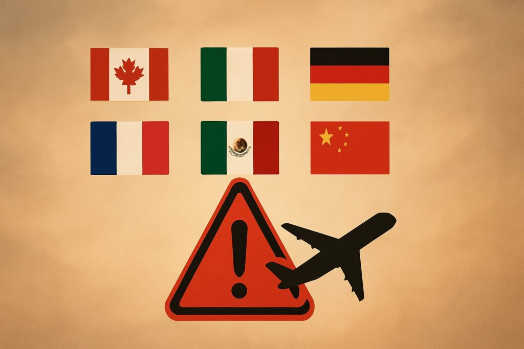 カナダ・イタリア・ドイツ・フランス・メキシコ・中国に対する旅行警戒レベル引き上げ、テロや外交緊張を受けて